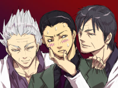 美壮年二人に挟まれて、手汗が止まらない森田なのでした。